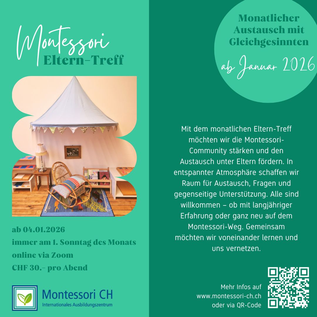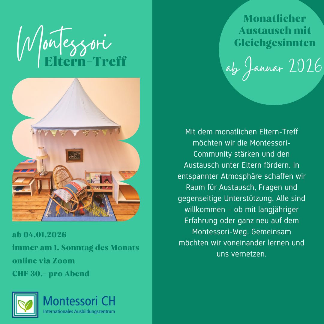 Mit dem monatlichen Eltern-Treff möchten wir die Montessori-Community stärken und den Austausch unter Eltern fördern. In entspannter Atmosphäre schaffen wir Raum für Austausch, Fragen und gegenseitige Unterstützung. Alle sind willkommen – ob mit langjähriger Erfahrung oder ganz neu auf dem Montessori-Weg. Gemeinsam möchten wir voneinander lernen und uns vernetzen.